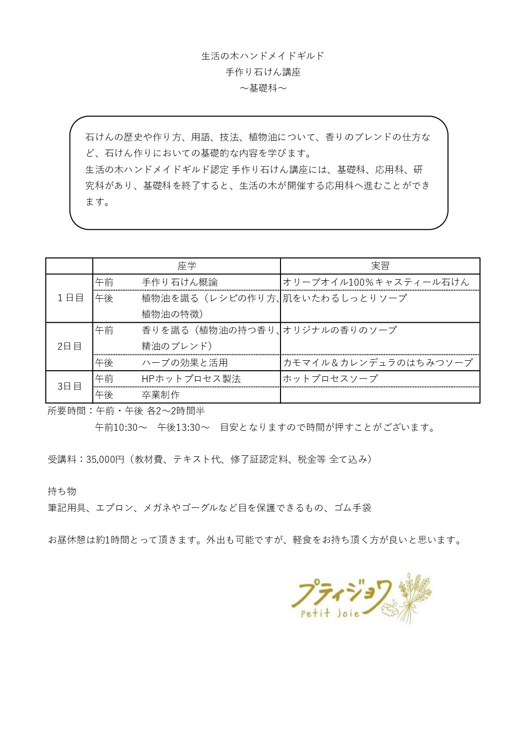 アロマ&手作り石けん教室 プティジョワ Petit Joie